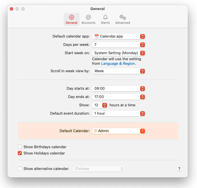 If there’s one of these calendars you’re likely to use most frequently, you can set this to be the default: