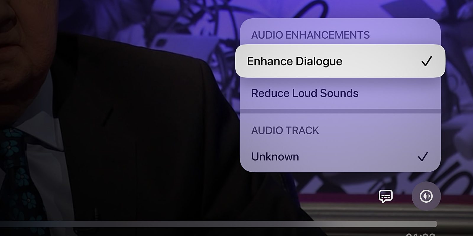It also appears to only be available with apps that use the standard system video player. You activate it through the Sound menu above the progress bar, with the Enhance Dialogue option next to the long-standing Reduce Loud Sounds option.