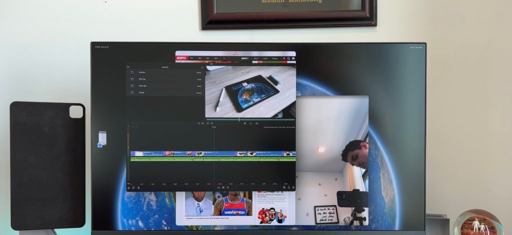 As I stated earlier, this solution isn’t a perfect one, but it gets you to where you might want to be. I have been tucking my iPad Pro underneath my monitor stand when Im using it in “clamshell” mode. I do hope Apple brings us a real form of clamshell mode in a future iteration of iPadOS. As of now, if you even pull down the notification tray on the main iPad display, then the monitor will go into a locked mode, so clearly, Apple has not created a legit clamshell mode for iPad. But as more and more people adopt the iPad as their main computer, I could see this coming to fruition.