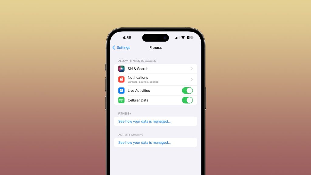 - The Settings app on iPhone now includes a dedicated section for the Fitness app for managing data and settings.