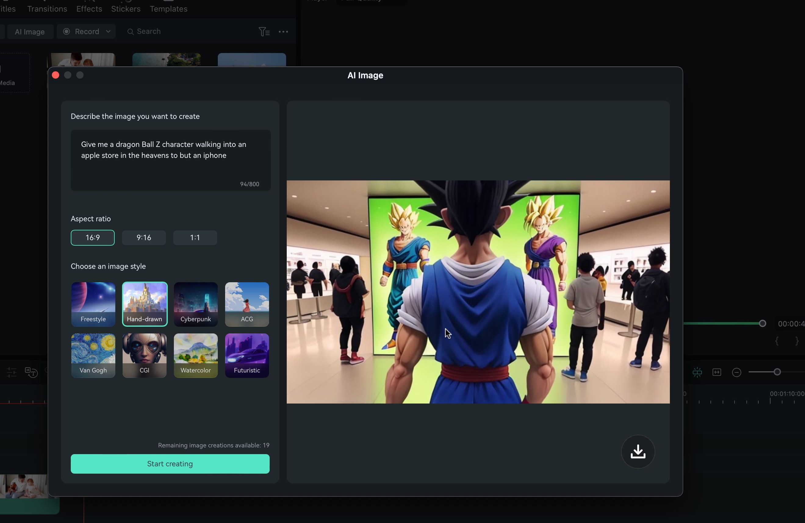 Filmora has also taken a deep dive into leveraging AI to make the editing experience even easier. You don’t even need actual footage. You can have their AI image generator create anything you ask it to! Check it out: