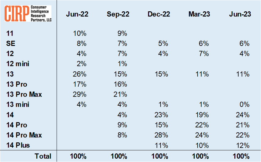 After digging into how Apple Music and Apple TV+ use varies by age, the latest report from CIRP returns to looking at iPhone adoption. According to the new data, the iPhone 14 lineup has achieved the highest share of sales among all iPhones sold in the US since the iPhone 7 lineup in 2017.