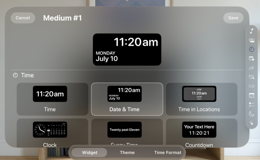 I highly recommend checking out David’s full blog posts. It’s fascinating seeing how he iterated from the initial experience of running Widgetsmith on visionOS to adapting it to take better advantage of gestures, matching the design language, and much more.