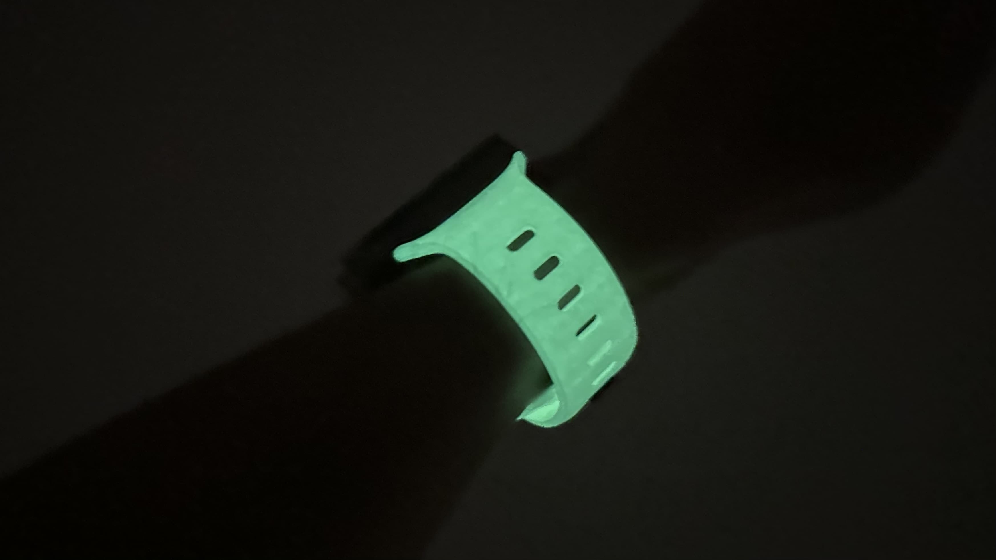I found it tricky to photograph the glow but here’s an untouched photo of the Nomad Glow in the Dark Sport Band – like Nomad’s images on its website, it definitely has a nice bright phosphorescence.