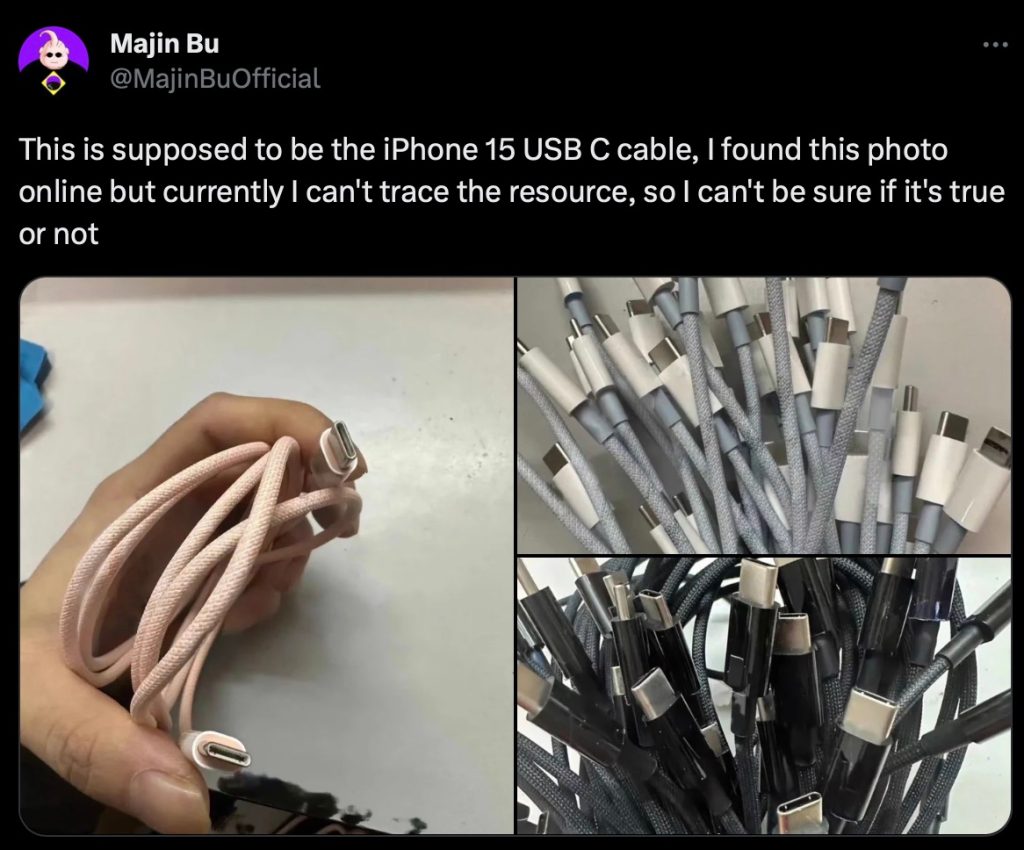 New over the weekend is a purported leak claiming to show USB-C to USB-C charging cables that will presumably ship with the iPhone 15 line. Unlike previous charging cables included in the box, these iPhone USB-C cables will be braided and color-matched.