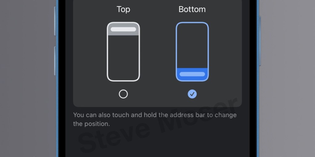 Steve Moser first shared a screenshot of the new address bar setting that has been added to the pre-release version of Chrome for iOS.