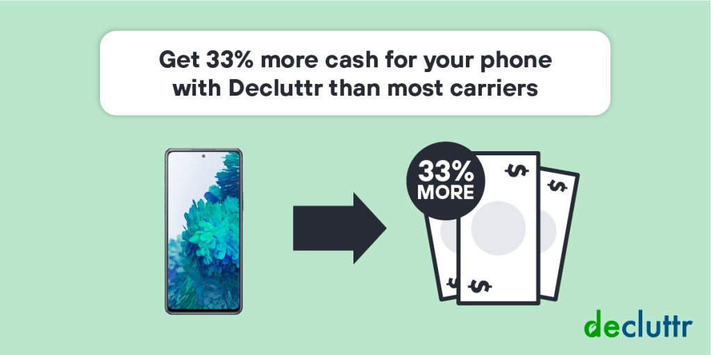 Decluttr pays over 33% more for your phone, and it pays in cash, letting you spend the money as you please. Unlike selling on an auction site, you get an instant valuation online, so you know exactly how much your phone is worth – and there are no fees.