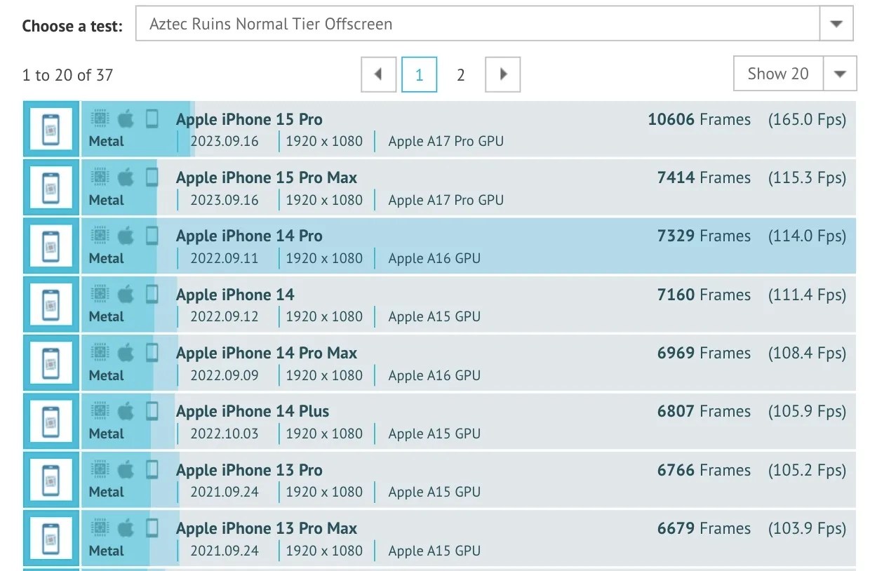 GFXBench results show how much faster the A17 Pro GPU is than A16 Bionic