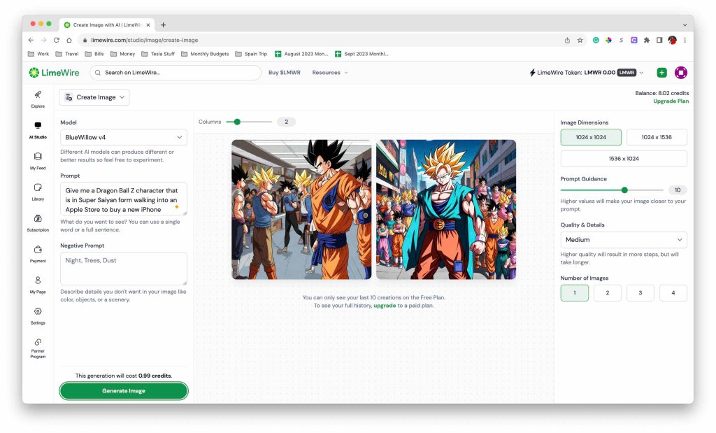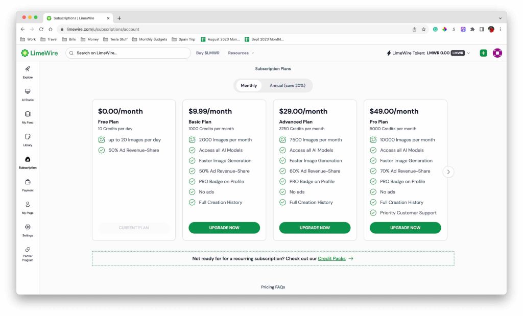 When it comes to pricing, LimeWire offers flexibility. The basic version of LimeWire AI Studio is free, providing an excellent starting point for users who are new to AI-generated content. For those who want more, LimeWire offers paid subscription plans that range from $9.99 to $99.99 per month. These plans provide additional prompts, access to more AI models, and other advanced features that can enhance the creative process.