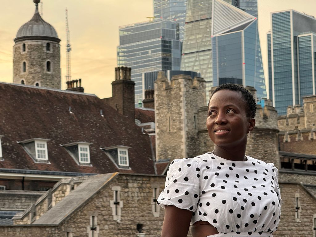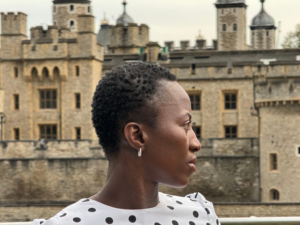 First, a head-and-shoulder shot. Here, the Tower of London is on the far side of a wide road, around 400-500 feet away: