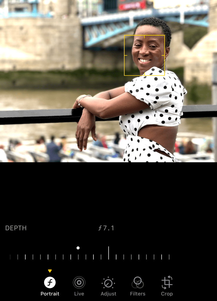 Yet this one, where the face is a much smaller part of the frame, no problem – depth data captured, and Portrait Mode available (and used to create artificial blur)!