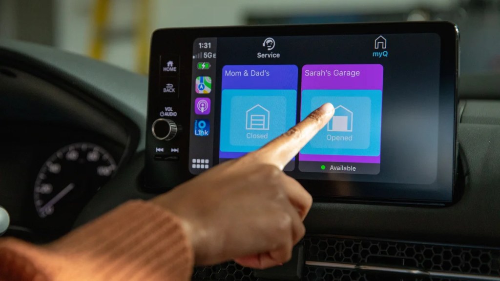 The garage door features are managed through the CarPlay apps for HondaLink and AcuraLink, both of which are available via the App Store. Most notably, you can set up a geofence that will intelligently show you a notification via CarPlay to open or close your garage door based on your current location.