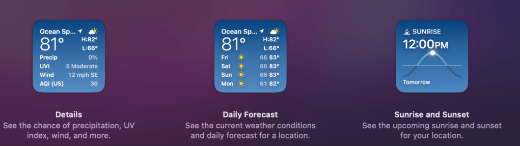 We’ve seen new Weather widgets for Details, Daily Forecast, and Sunrise & Sunset on iOS and macOS, as well as a new analog clock on the iPhone and iPad. Books also has a new fast fade page turn animation option.