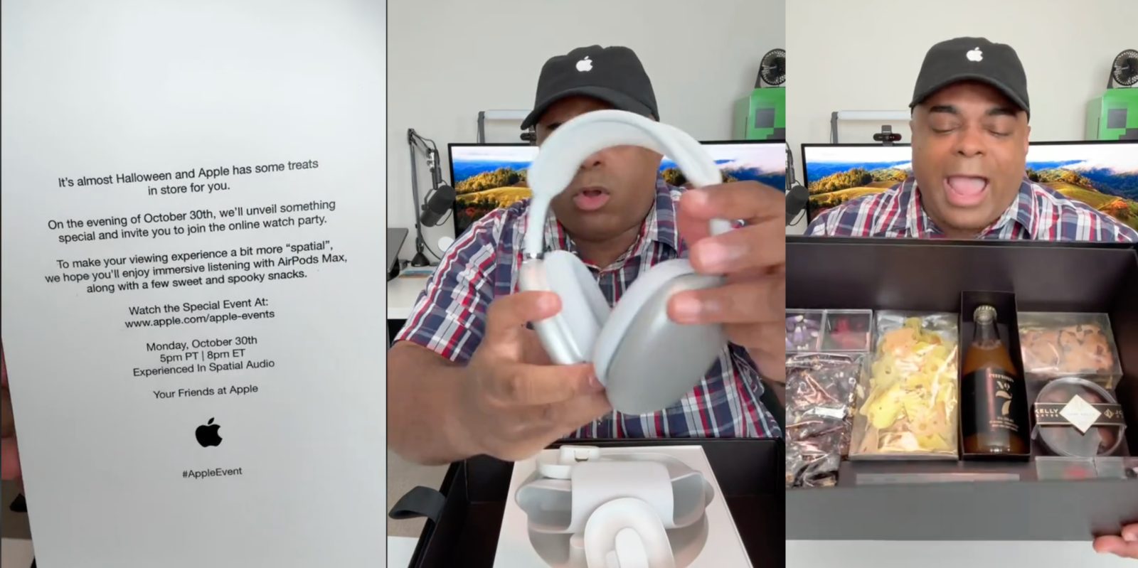 Apple is sending out special gift boxes to select influencers, such as Lamarr Wilson. The boxes include a pair of AirPods Max headphones and some “sweet and spooky” snacks and drinks to consume while watching the event on Monday night.