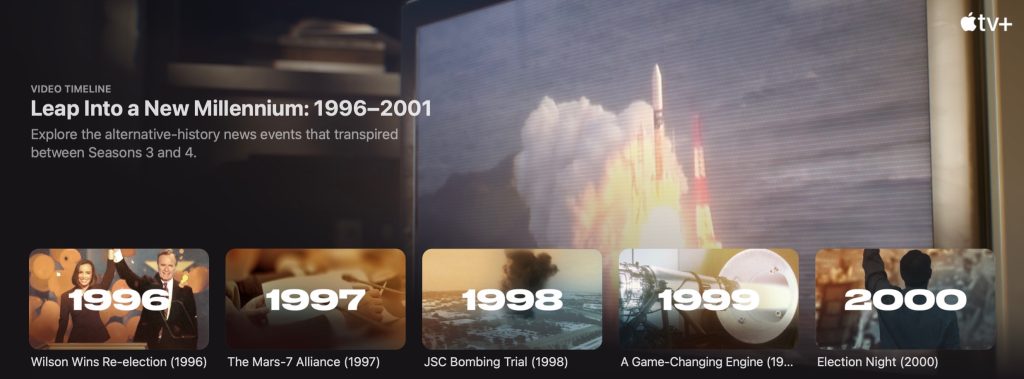 Apple TV+ subscribers can now view over 15 minutes of fictional news clips on the For All Mankind landing page in the TV app. These cover years 1996 through 2001 … in the FAM universe, of course.