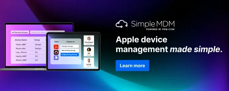 Apple at Work is brought to you by SimpleMDM: Check out SimpleMDM and discover the limitless possibilities of SimpleMDM’s powerful API. Whether you want to automate tasks or integrate SimpleMDM into your existing infrastructure, the API offers the flexibility you need to gain full programmatic access to your account and devices.