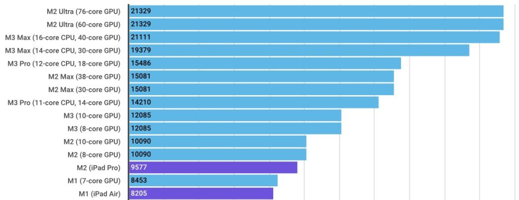 The M3 Ultra is still to come, of course, and that will obviously top the rankings once it’s available in updates to the Mac Studio and Mac Pro.