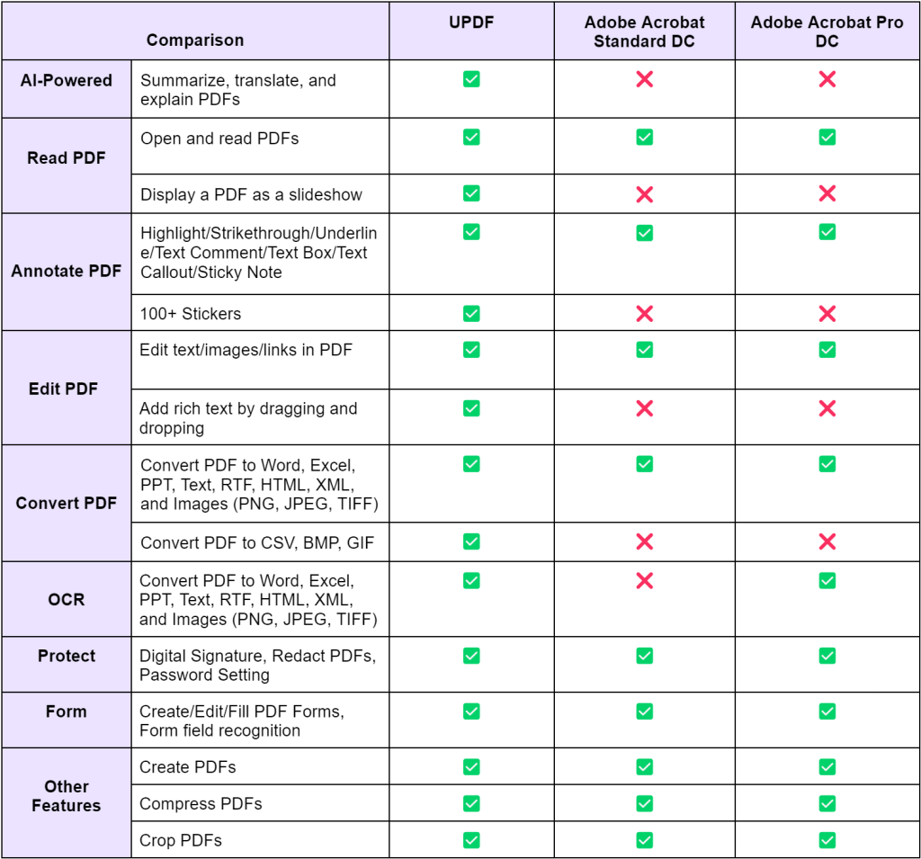 UPDF even supports users with a perpetual license that Adobe doesn’t offer. A single UPDF license also gives you access on multiple devices at the same time with 10GB of cloud storage. For instance, you can access UPDF on up to four devices at the same time with a single account or license purchase. Bellow are the feature details:
