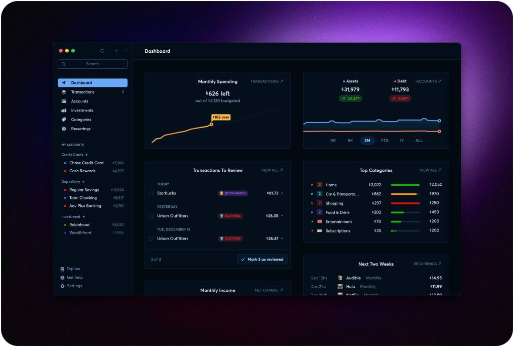 Setting up a new budgeting app can be daunting, whether it’s your first app or you’re switching from another one. But Copilot’s setup process is excellent. The app uses four different aggregators plus its own technology to sync your different accounts. This includes bank accounts, credit cards, investments, loans, and more. The use of these aggregators (Plaid, Finicity, MX, and Akoya) means that Copilot has better far coverage and reliability than other budgeting platforms.