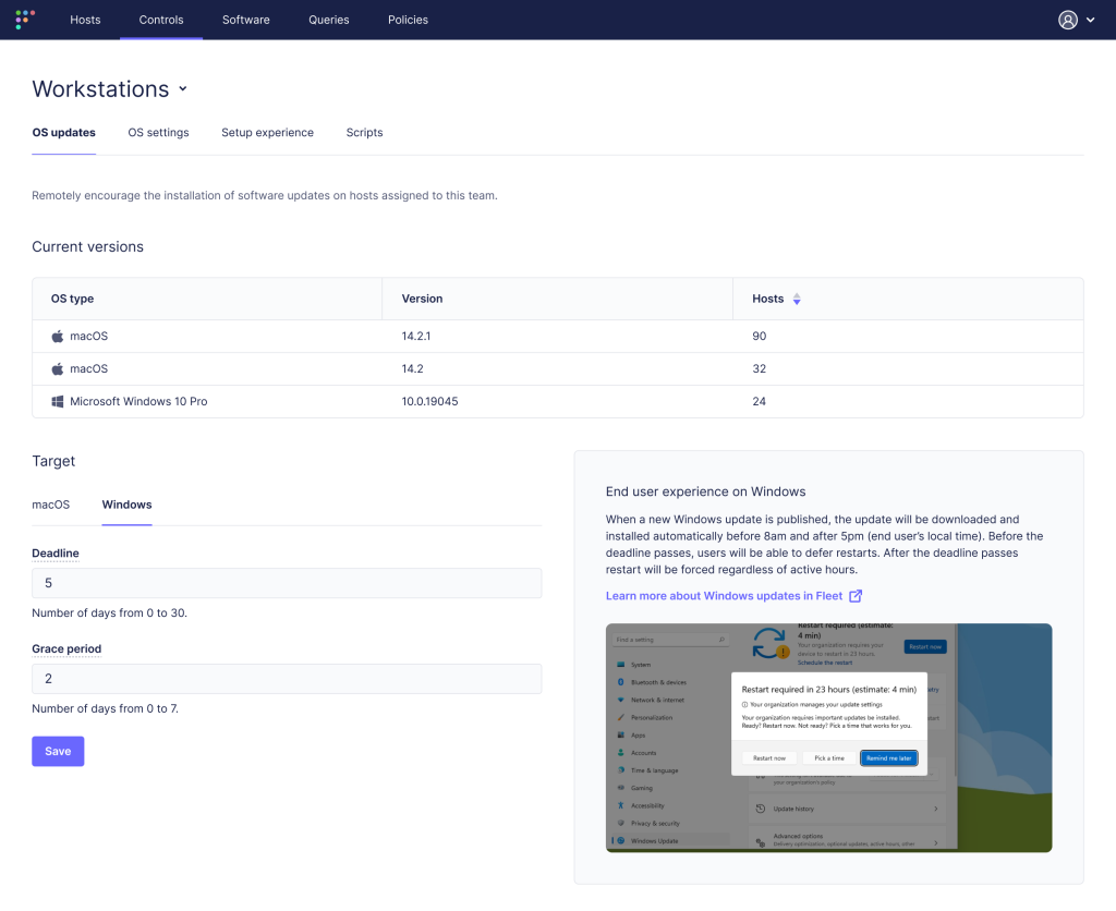 “We wanted this to be our last MDM migration,” said IT manager at a large gaming company. “Rather than letting a bunch of tools dictate how we staff and run things, Fleet is like a lower level of abstraction. It gives admins a more open, consistent approach to device management. We can define how we manage devices all in one place, whether we’re talking about declarative device management (DDM) and FileVault on macOS, Autopilot and configuration service providers (CSPs) on Windows, or remote lock/wipe for Linux.”