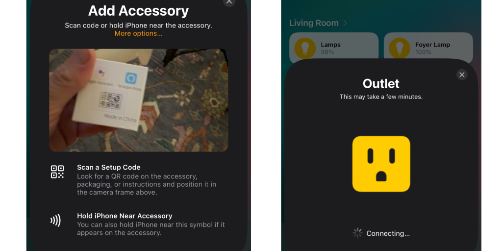 The CozyLife HomeKit plug is incredibly small, and this matters for smart plugs because many of them are so large that they overlap with the other outlet (in a dual outlet), making it unusable. You could easily have a standard plug-in in one outlet and the CozyLife outlet in the other. CozyLife includes the HomeKit code on the box and the side of the device, but don’t start onboarding to HomeKit just yet. I made that mistake without reading the manual. You’ll want to download the CozyLife iPhone app first. You’ll want to plug up the device once you create an account (I used Sign in With Apple). The built-in scanner should find it automatically, but if it doesn’t, press and hold the button on the side of the device for 10 seconds to put it in pairing mode. You’ll then start the process of onboarding the device to the app, and then it’ll prompt you to add to HomeKit by scanning the code.