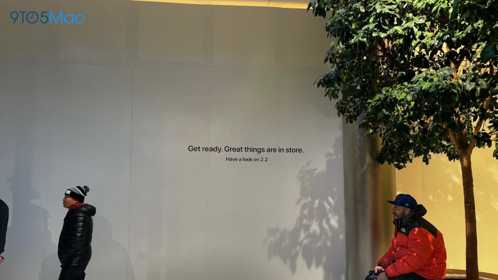 Inside, Apple appears to have blocked off half of the store and put up a teaser message: “Get ready. Great things are in store. Have a look on 2.2.”