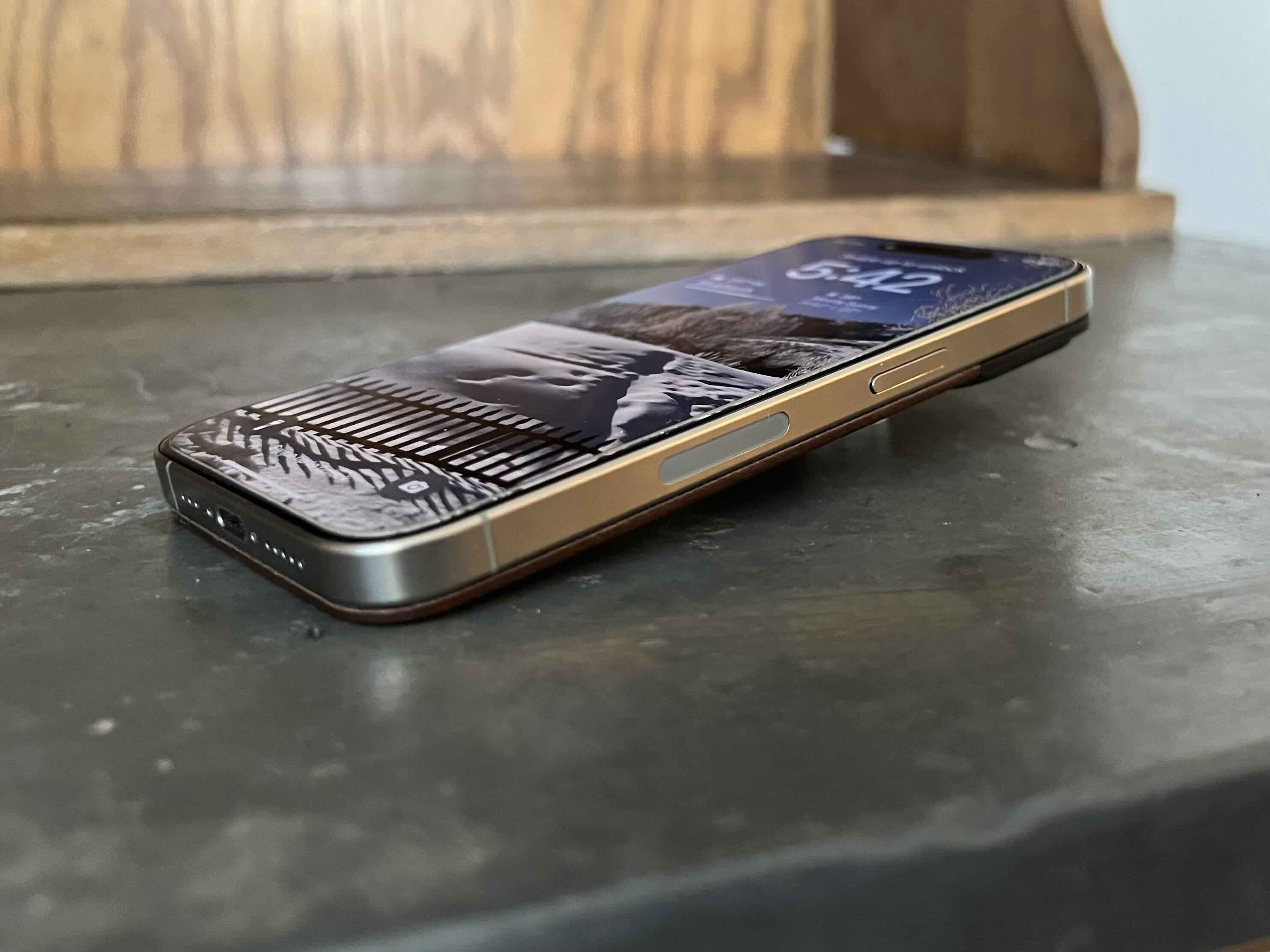 Here’s a look at how slim the Magnetic Leather Back is on my iPhone 15 Pro: