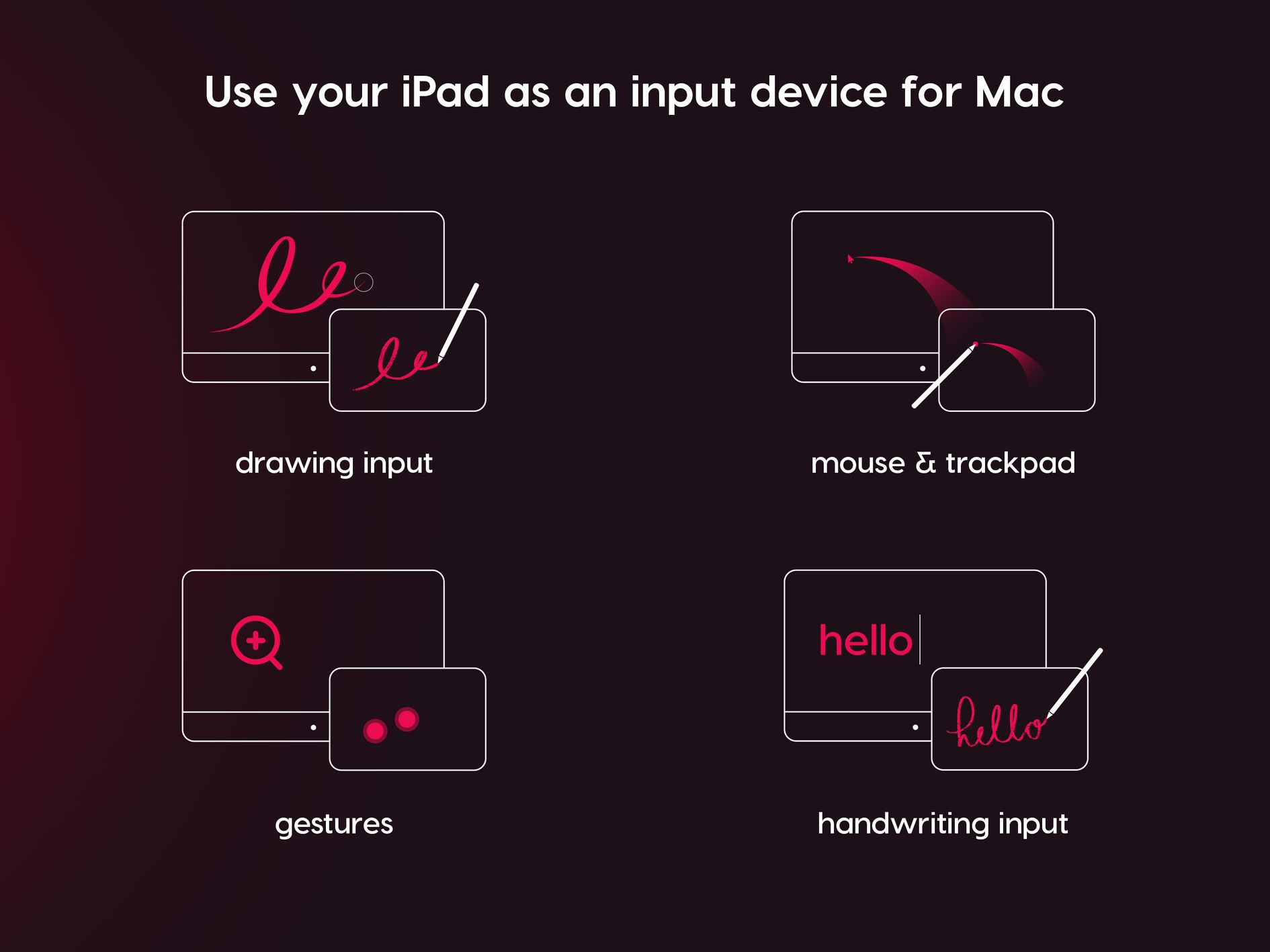 - Handwriting Input: Transform your handwriting on iPad into typed text on your Mac.