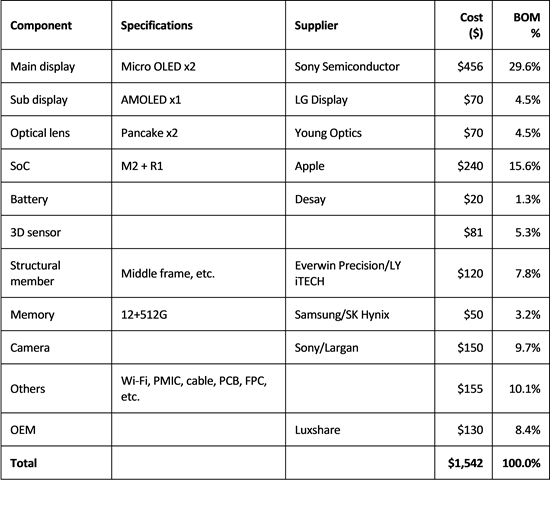 According to Omdia, Apple is paying $228 for each of those displays from Sony, putting the per-headset cost at $456.