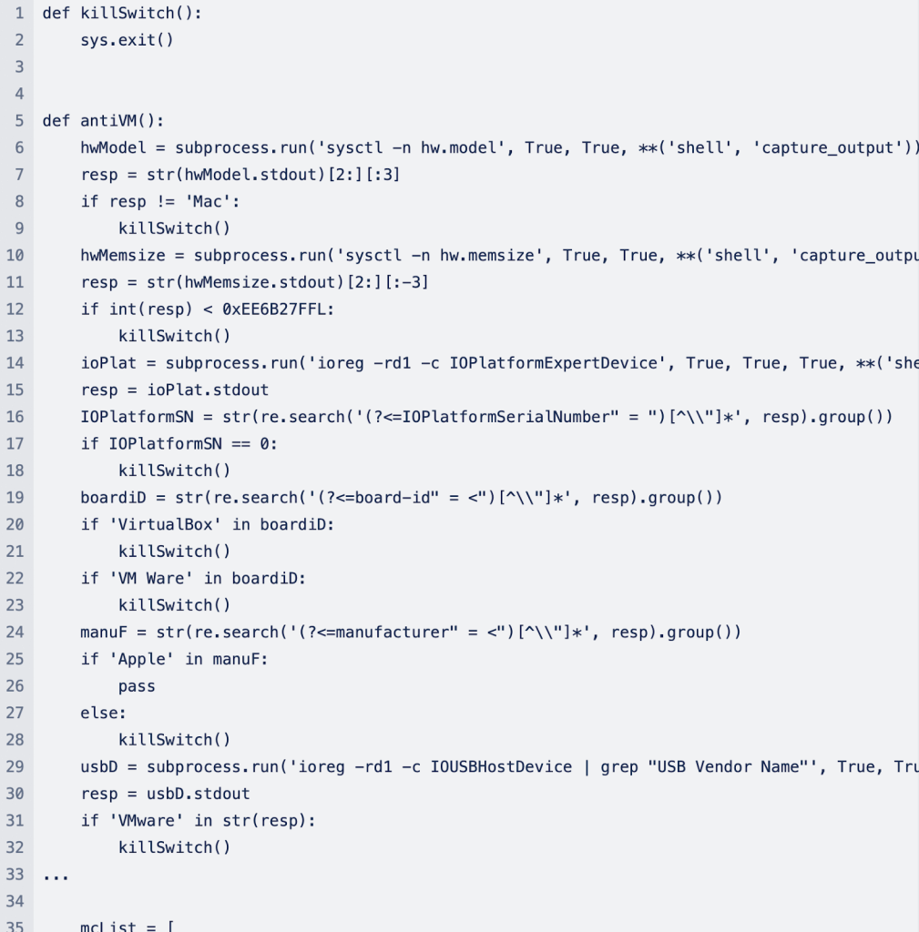 Moreover, Empire Transfer’s Mach-O file deploys anti-virtualization techniques that can trigger the code to “kill itself” if it detects that it’s in a non-Apple environment, like VirtualBox or VMWare. This is a fairly sophisticated technique designed by malware authors to evade detection and prevent forensic investigation by security researchers. “These tactics aim to detect the presence of virtual machines, adding an additional layer of evasion to the malware’s arsenal.”
