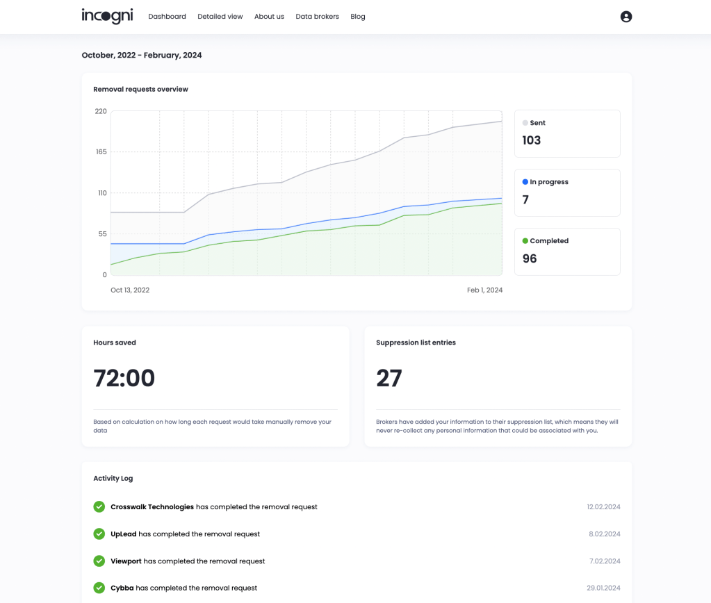Incogni jumps through data companies’ hoops, sticking to each one’s particular removal procedure. They do the tedious and frustrating work so that you don’t have to.