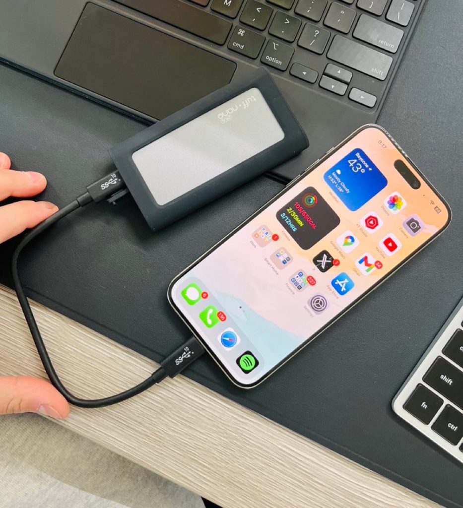 The best part of the new USB-C port on the iPhone 15 lineup is that now we can, confidently, connect an SSD directly to the iPhone. I have been using the Caldigit Tuff Nano Plus which brings 2TB of storage and is on sale for $140 off! I use my iPhone for a lot of my youtube footage so instead of relying on Airdrop, i now offload the footage to the Caldigit SSD and then plug the SSD into my iPad and I can be editing immediately!