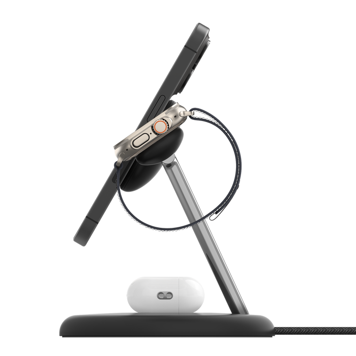 - Wirelessly charge 3 devices at once: iPhone, Apple Watch and AirPods