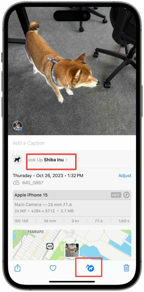 - Visual Lookup and Metadata: See detailed info about the photo, including location, camera used, and more.