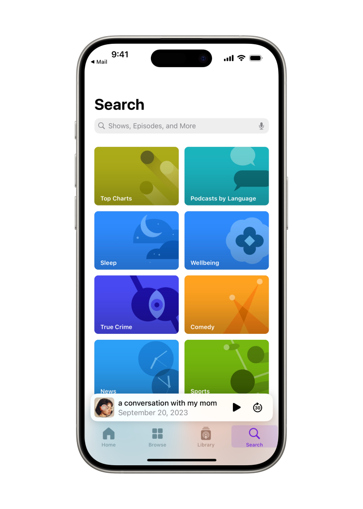 You can find the new category now in the Search tab in the Apple Podcasts app.