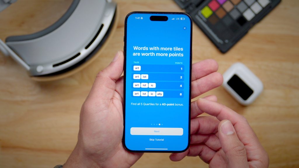 In the Apple News app, Apple News+ subscribers in the United States and Canada will find a new “Quartiles” word game after updating to iOS 17.5. The game prompts players to select from a grid of tiles to form words.