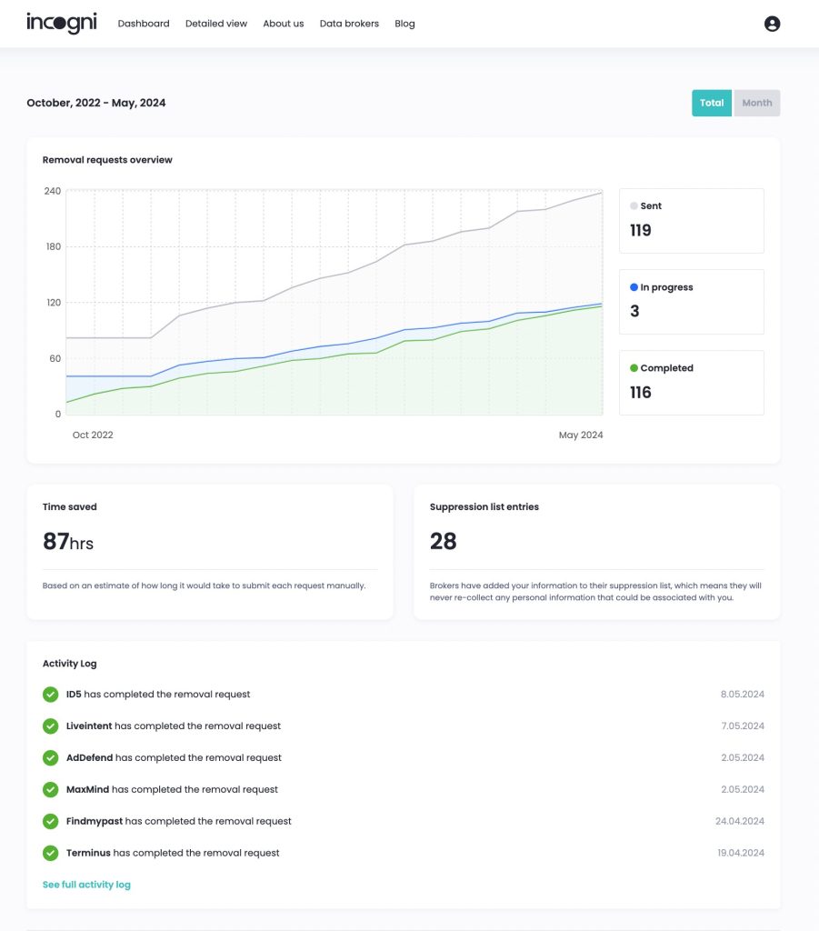 Incogni deals with extra data broker interactions like rejection appeals. The best part is that Incogni restarts the whole process every couple of months to keep data out of circulation.