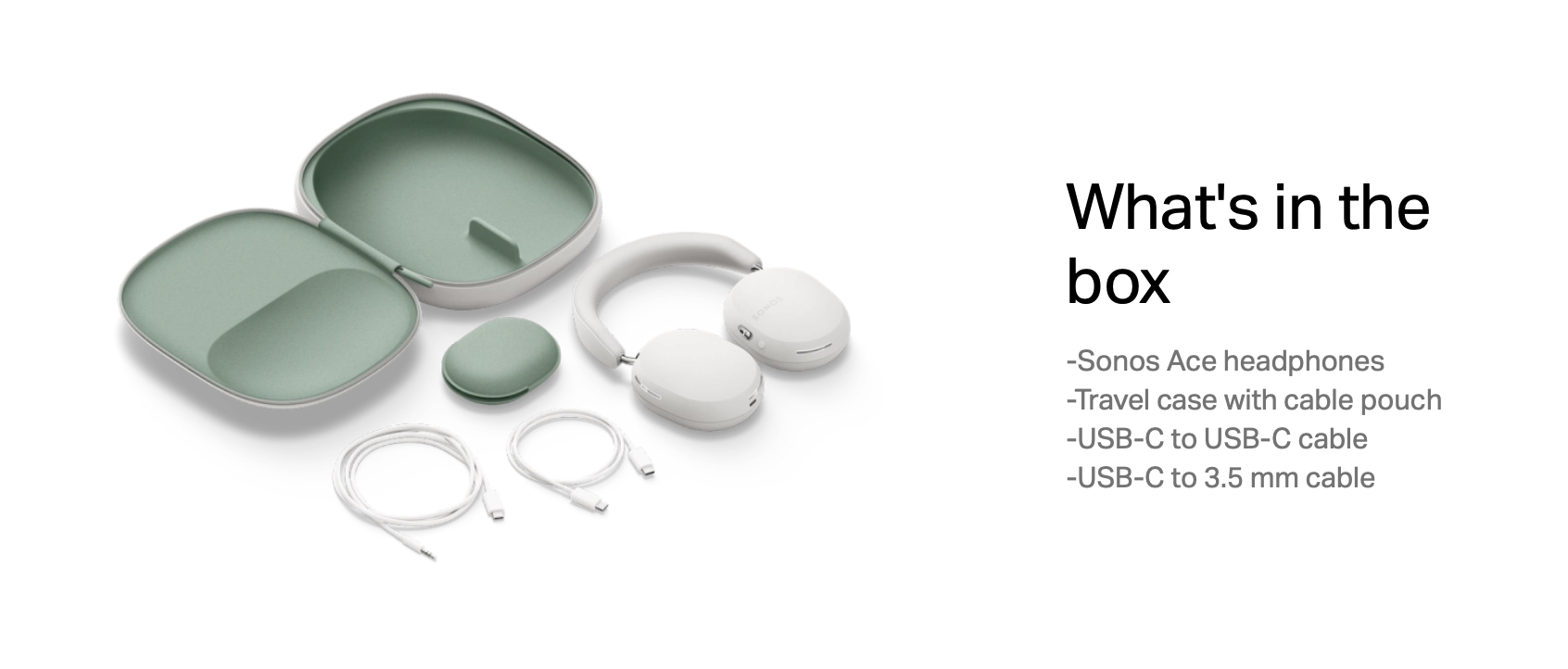 Sonos Ace come with both a USB-C to USB-C cable and a USB-C to 3.5 mm cord. AirPods Max come with a Lightning to USB-C cable, but charges $35 for the necessary Lightning to 3.5 mm bi-directional cable.