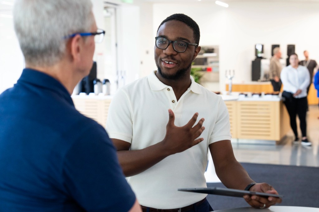 Dezmond Blair, 22, gave the first presentation to Cook with great enthusiasm. Blair’s app, MTB-XTREME, was inspired by his urge to share his experience biking outdoors in Michigan. Cook declared that the MTB-XTREME experience needs to be on Apple Vision Pro.