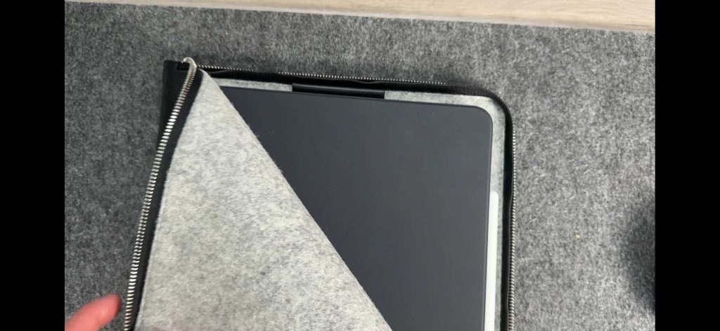 The M4 iPad Pro is not a cheap package, especially when considering the additional Apple accessories. I spent around $1800 on my 1TB iPad Pro with Magic Keyboard and Apple Pencil Pro. So, the first thing I did was to make sure I had a safe way to store my iPad while still being able to bring it with me. The new Leather folio by Woolnut was perfect. This is essentially a perfectly sized leather sleeve that fits your M4 iPad Pro with the Magic Keyboard and Apple Pencil Pro. The outside is made of full-grain leather, which smells fantastic, and the inside is made of this extremely soft and satisfying wool felt. So, it will still be protected even if you place your iPad in the sleeve without the keyboard.