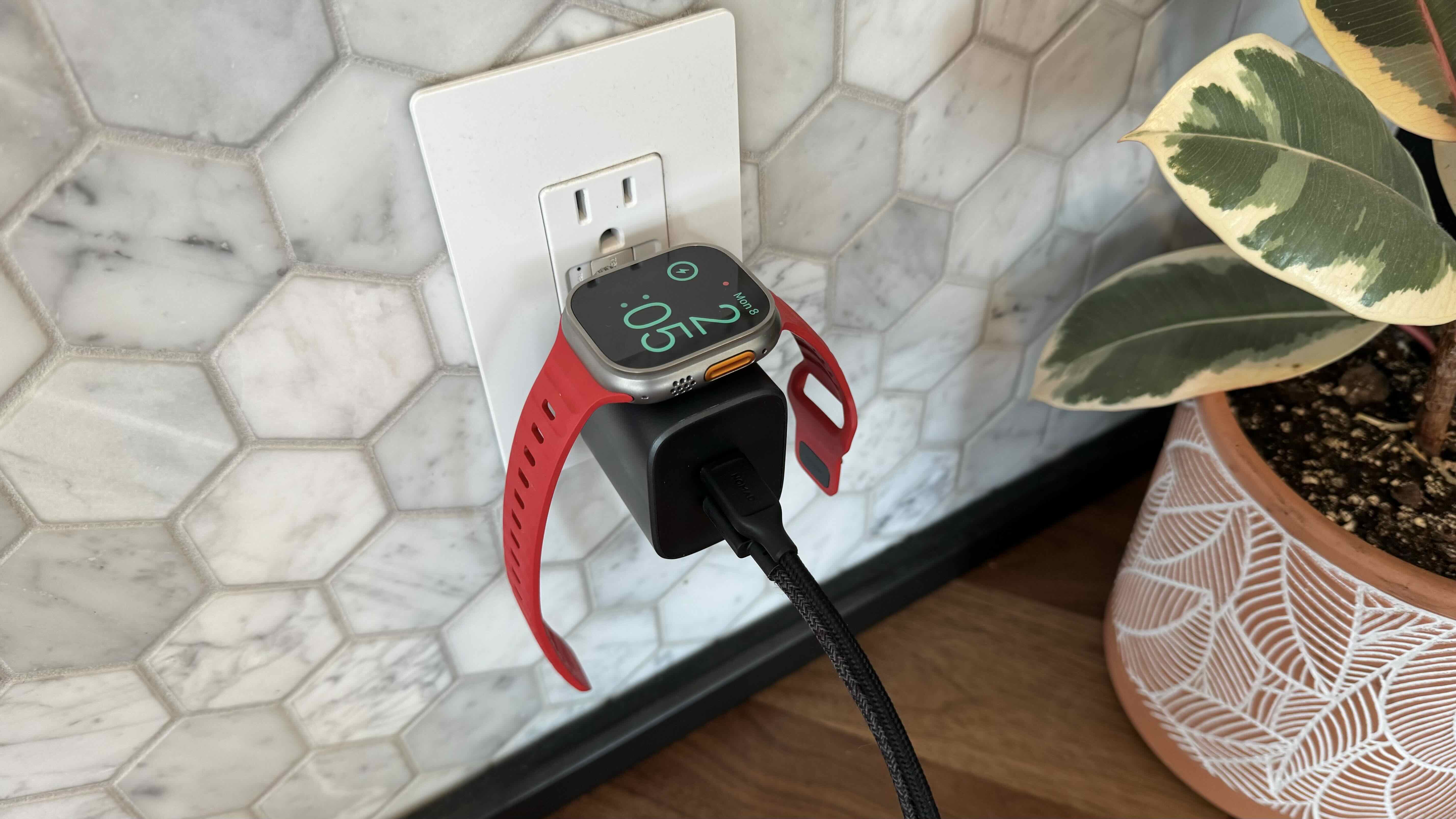 In my testing, there’s been room for most regular-sized plugs to fit below the 65W Power Adapter Apple Watch edition on duplex outlets.