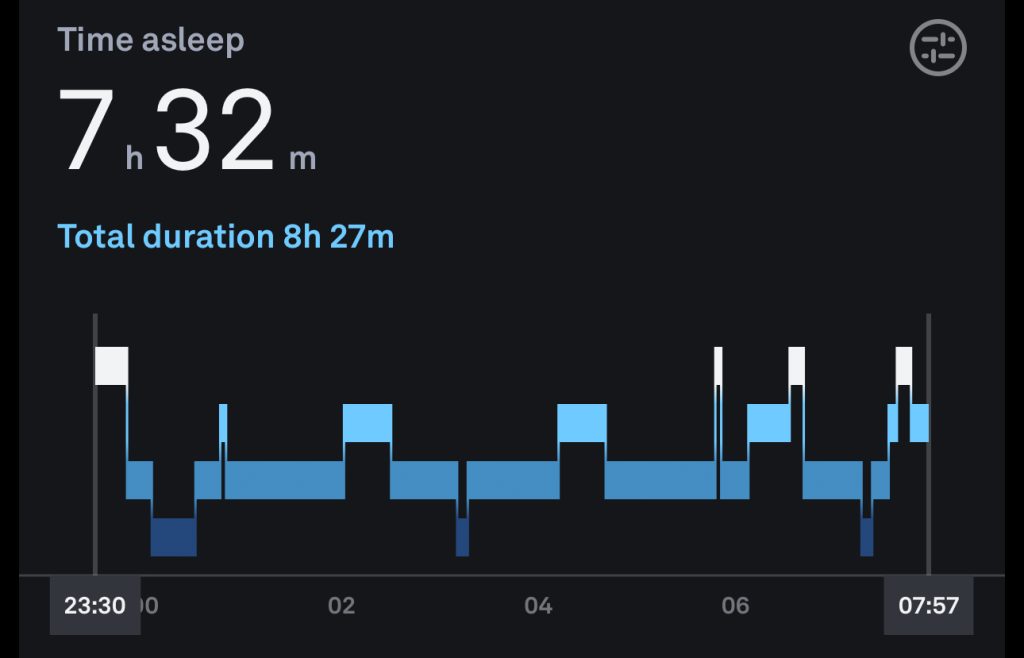 In particular, the Apple Watch seemed to do a relatively poor job of detecting when I woke up in the night. Indeed, I noticed once or twice that the Health app would show me asleep even during times I was using my iPhone! My early experience of the ring, in contrast, is that it’s spot-on about when I woke, however briefly.