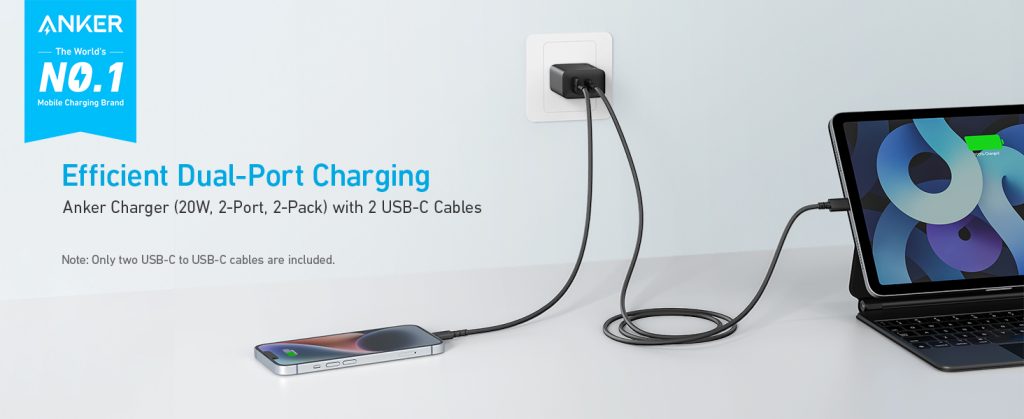 Score a pair of Anker dual-port USB-C/A wall chargers with two 5-ft. cables for just $13 ($6.50 a pop)