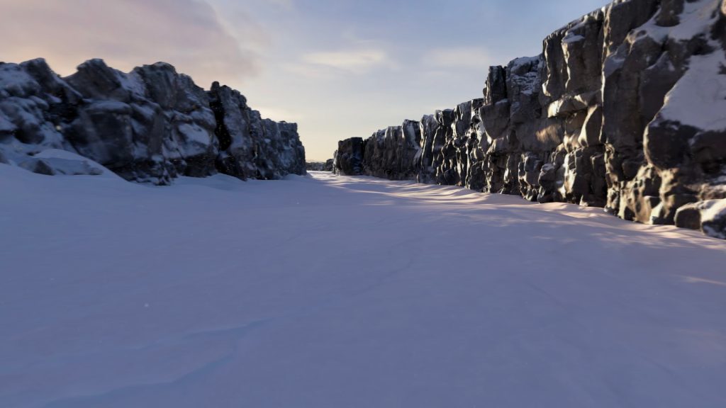The magical landscapes at Þingvellir are formed in the unique geographical setting of a rift valley in the divide between the North-American and Eurasian continental plates. The lava fields at Þingvellir are torn apart by tectonic forces, leaving admirable gorges and fissures.