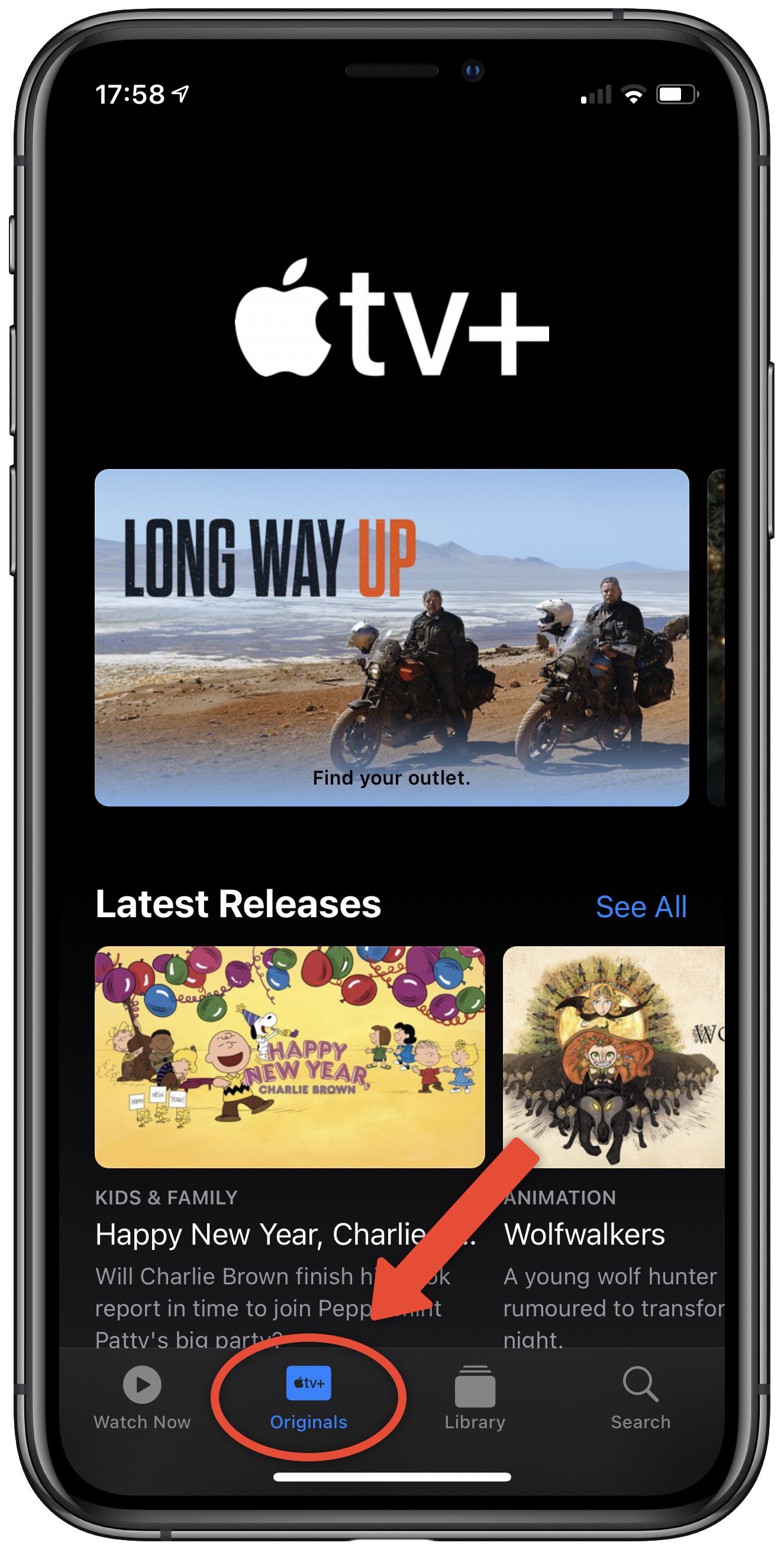 The easiest way to get started with Apple TV+ is to open the Apple TV app on your device, and tap on the Originals tab. (On some platforms, this tab is simply labelled using the ‘tv+’ logo.)