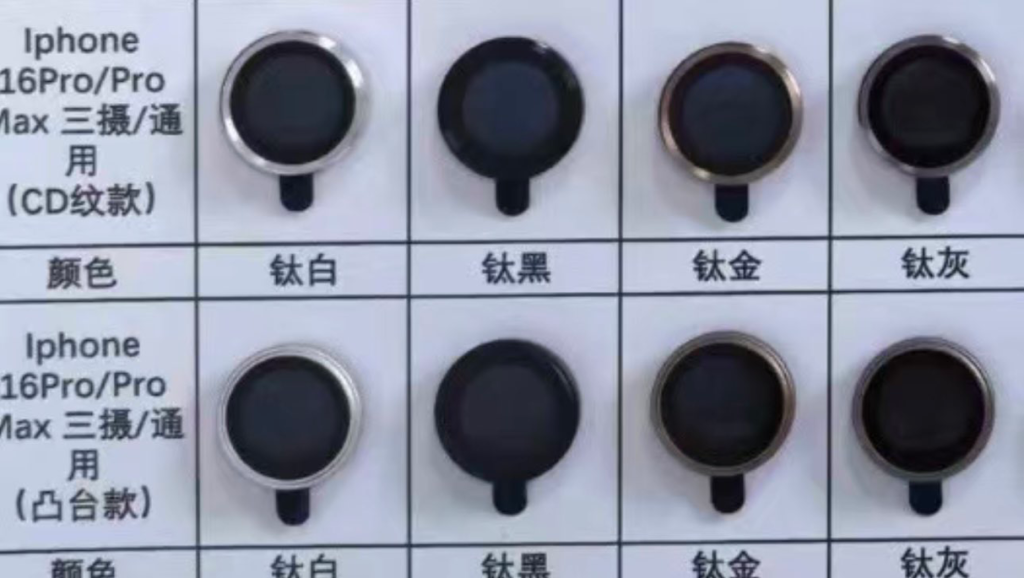 A new image shared on social media appears to show the camera lens rings of the iPhone 16 Pro and iPhone 16 Pro Max models, reaffirming the previously leaked colors. The leak also contains details about the new bronze color.