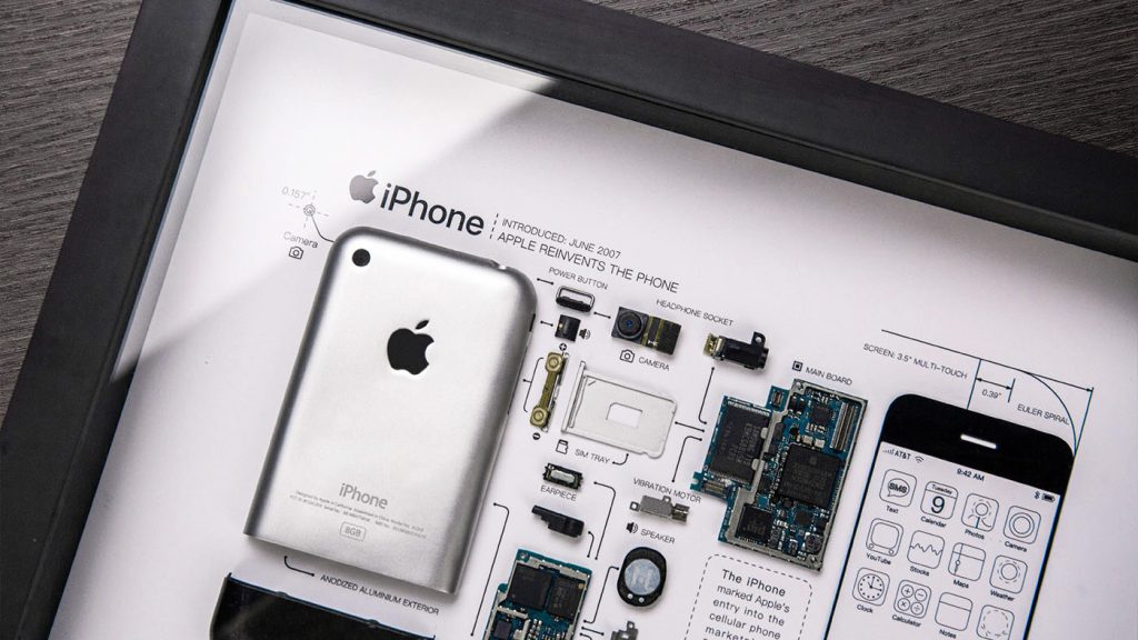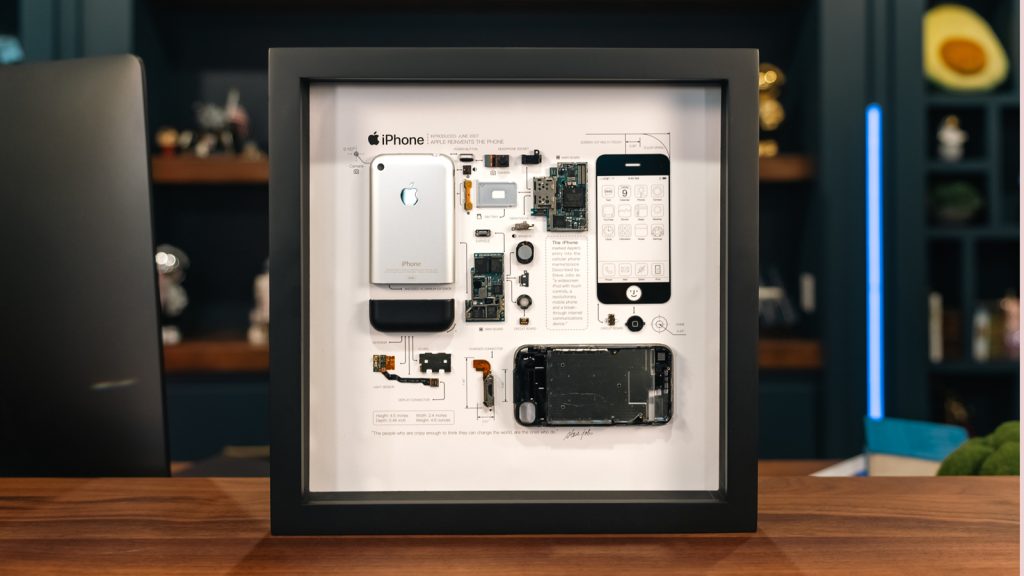 GRID Studio has created a vast collection of popular frames featuring disassembled iPhone, iPad, iPod, Apple Watch, and Mac hardware. The company disassembles old hardware, lays out all the parts, and beautifully arranges them in a frame.