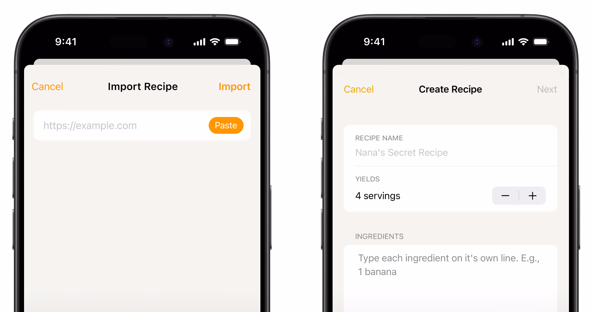 Additionally, the app allows you to easily import recipes from websites, or type them in yourself. This feature is quite handy if you’re cooking at home and want something more accurate than a photo estimation.