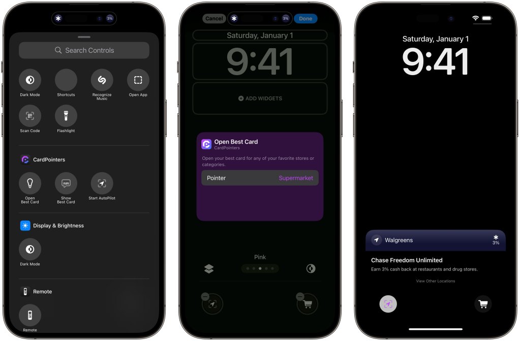 CardPointers 6 has a number of toggles in Control Center now, allowing users to start the “AutoPilot” live activity we mentioned earlier, and also show your best card.
