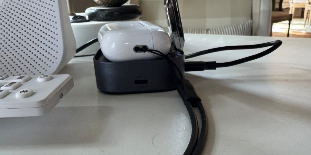 While it excels as a desk or nightstand charger, it falls short of being the best travel option. Weighing almost half a pound it’s a little too dense and bulky to be carried around easily in small bags or travel pouches. The weight is especially noticeable compared to lighter, more travel-friendly chargers. That said, its portability is still viable if you’re willing to deal with the extra bulk for the sake of its multi-device charging capabilities. Especially since the cable is replaceable so you could grab it off your desk without having to undo any cable management.